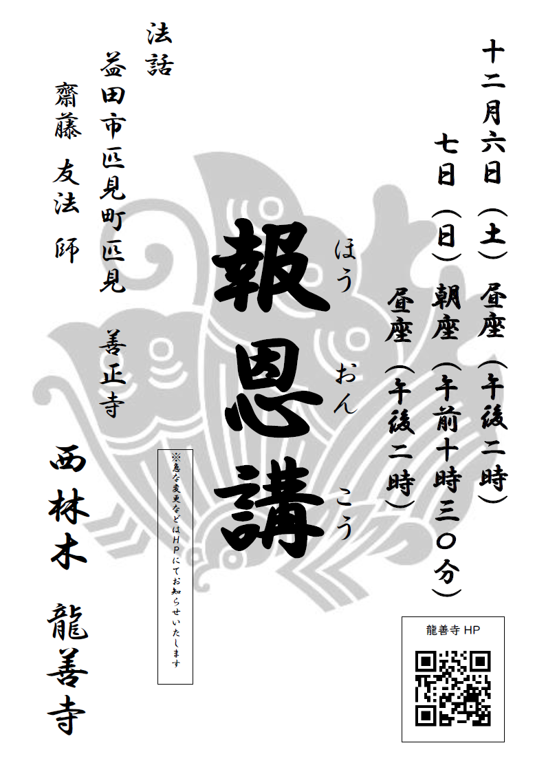 法要日程表 2025(令和7)年 乙巳